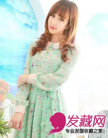 披肩螺旋烫卷发,棕黄色的染发颜色让发色看起来更加有光泽度,而卷发修饰了脸型之余,齐分下来的刘海,很好的修饰了窄额这个缺点。