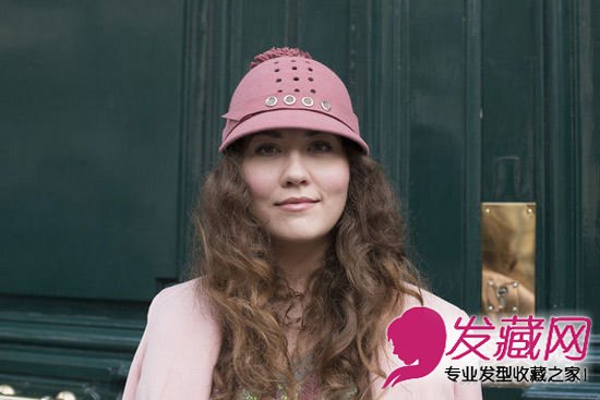 亚麻色的卷发会很有减龄的效果,配上粉色的帽子更是能显得你气色很好。