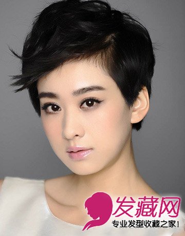 短发妞也可以利用碎发的刘海修饰脸型,利落的黑色短头发,几缕刘海遮住大额头,精致的妆容,不失美丽干练。