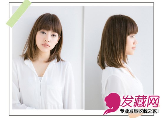 圆润的齐刘海搭配中长直发造型,有很好的修颜效果,而且十分的清新,很有范。
