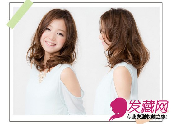 中分发型两边长发贴近两部,缩短脸型的宽比例,让脸型显得比较纤瘦一些。棕色头发让肤色显得比较粉嫩。