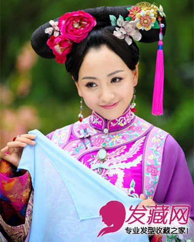 杨蓉的古装发型可是让人眼前一亮,看这款简单发髻,用额头两边的秀发弯曲后梳,不但能够修饰圆润额头,还能打造三角形的层次感,鲜花发饰更是鲜艳夺目。
