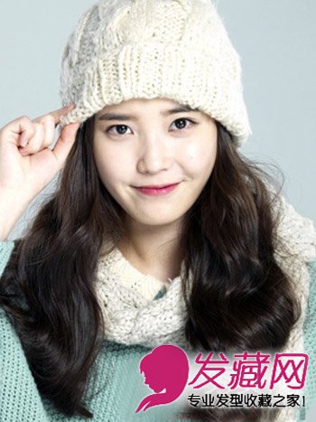 这款韩式露额披肩长卷发也是妹纸们冬季发型的热门,发量感十足的长发搭配帽子很有保暖的效果,甜美淑女的冬季发型。