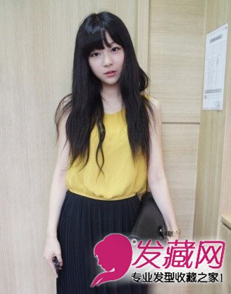 纯黑的长直发,清新脱俗,搭配斜刘海的设计,轻松修颜,而且展现出清新的一面,结合mm小巧的脸蛋,显得十分甜美动人。