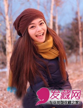 充满治愈系的笑容给整个冬季增加了些许温度,披肩发型,厚重棉服戴上毛线帽,率真可爱。