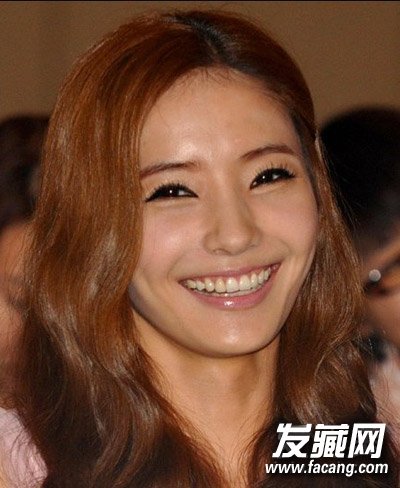 特色的交叉中分,褐色中带有红色的激情,微卷的秀发卷向内,就是那激情的女作家的气质。