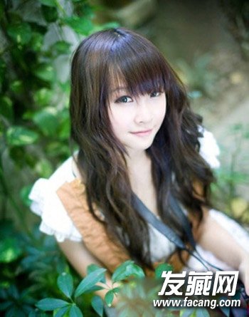 深棕色的染发烘托出mm白皙的皮肤,展现出清新的一面,微微斜分的刘海设计,打造出一张迷人的小脸,凸显出甜美的风格,不规则的烫发设计也在充满时尚的气息。