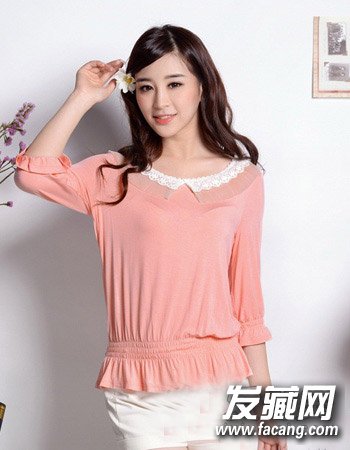 同样是一款优雅感十足的女生鹅蛋脸适合的发型,相比上一款女神范的中分发型,这种偏分式的长卷发更显清新优雅淑女风,侧边的花朵发饰更显青春甜美风。