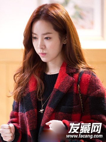 国字脸女生最爱的中分长卷发,波浪式的烫卷发很显发量感,露出额头的发型设计很适合修饰国字脸型。