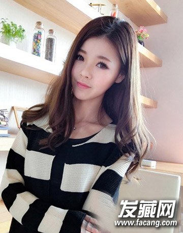 一款比较适合小清新范的卷发设计,展现出独有的魅力气质,中分的刘海很好的修饰了脸型,将一侧的头发撩在耳后,凸显出几分小女人气息。