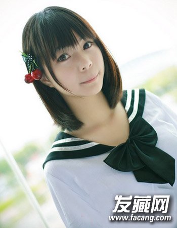 发型点评:可爱的圆脸妹子显得超可爱,一款清爽的学生头柔顺甜美,薄薄的刘海更显清甜,点缀发饰十分可爱灵动。