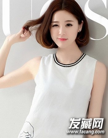 一款清新知性的中短发发型,发尾的内扣勾勒出别致的时尚感来,清爽的无刘海发型的设计为造型加分不少, 板栗色发色自然有气质。