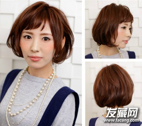 较长的刘海顺着脸型而下,蓬松的波波头起到很好的修饰脸型的作用,时尚的染发生色不少。