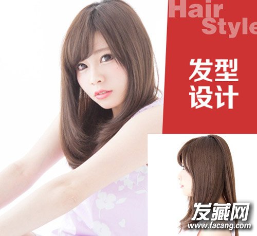 稍显厚重的刘海修饰脸型,塑造小脸效果。本发型发尾较为整齐、微碎,内扣弧度较小,再加上深棕染发,整体感觉比起上一款的青涩更显女性的温柔与柔媚。