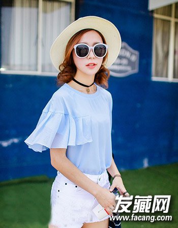 甜美范十足的一款女生齐肩卷发发型,时尚发型搭配潮范十足的黑超和遮阳帽,打造出了今夏最吸睛的造型图片哦!