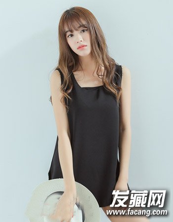 时尚大方的一款女生卷发发型,齐刘海卷发染出时尚的发色,衬托了白皙脸蛋,空气感齐刘海也十分的流行哦!