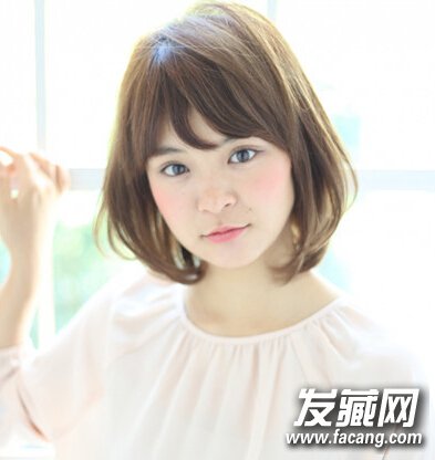 三七分的刘海自然地垂下,让头发看起来特别有光泽,斜刘海式的梨花头也给美眉一种可爱的感觉,再搭配上棕色的头发颜色,让美眉看起来比较时尚,同时也有修颜的作用,衬得皮肤比较白。