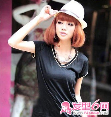 韩国mm最爱的棕红色梨花头,齐刘海到眼睛的长度,显得甜美可爱,柔顺的侧发,裹住脸颊,视觉上起到小脸作用。