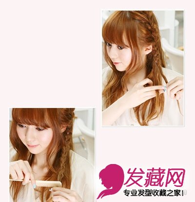 STEP 2编完三股辫之后我们不用橡皮筋固定,而是用梳子在发尾的部分倒梳做挂蓬的效果,让头发自然做出结实的收尾效果,这样的发型会更加自然哦!