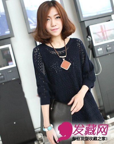 OL气质短发梨花头,侧分的长刘海巧妙的修饰脸型,而且更显优雅,浅棕色的发色更能突出发型的时尚感。