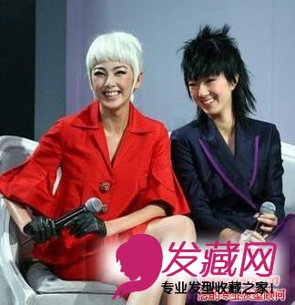 白色BOB假发,虽然稍微有点雷,但是绝对抢眼。当然,这样是不能走到大街上的,她这是为戏做宣传。