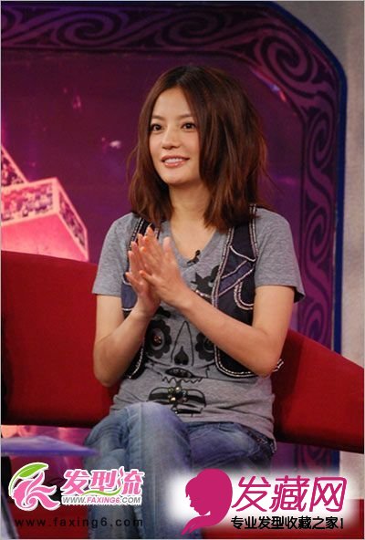 这款赵薇的梨花头图片,优雅甜美,光滑柔顺的的梨花头,洋溢着青春的动感气息,中分的长刘海发型修饰出了完美的脸部轮廓线条,板栗色的染发颜色增添了整个发型的时尚感。