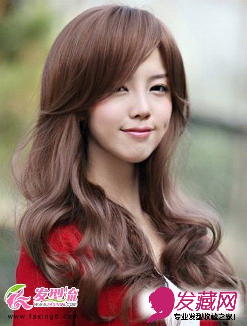 大波浪斜刘海梨花头发型把刘海随性斜到一边,这种风格不拘于传统的齐刘海,具有较大的随意性,发尾大幅度地内卷外翻是对传统梨花头的升级,整个发型显现娇媚和女人味。