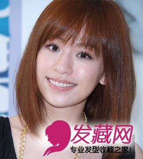 栗色的染发给人洋气的感觉,刘海若隐若现的遮住双眉,柔顺的发丝自然分到两侧齐肩,发梢微微内扣,整个发型配上甜美的笑容,一个甜美清新的可人形象展现在我们眼前了!