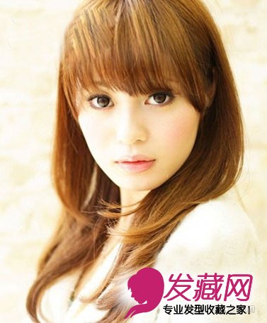 碎碎的刘海更有瘦脸的功效,披肩的中长直发梨花头甜美清新,棕色的染发流行不落伍,整款发型能够让你更加淑女时尚!