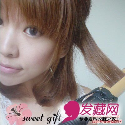 再放下一层头发,也分4份,但这次靠近脸的两份卷发不一样哦~如果还是内卷的话整个人会看上去很老的样子,这层要把电棒竖起来向外卷。