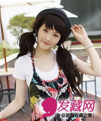 扎上两个马尾女生发型,夏季可爱萌女孩最容易拥有的发型,在耳朵位置扎起来方式,把圆圆脸型修饰更可爱,同时显出年轻女孩的活力,搭配一顶绅士帽,俏皮甜美的卡通女生。