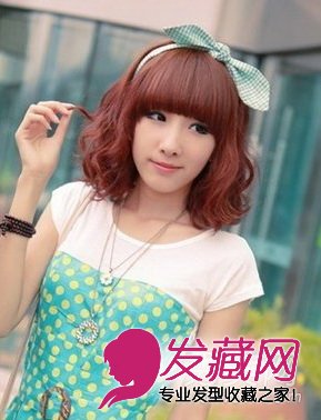 短发梨花头,最具纯真俏丽气质的梨花头发型,蓬松的发丝紧贴着女生的脸颊,修饰出了一张精致的瓜子脸效果,给人很清新甜美的感觉,融入红棕色的染发,搭配蝴蝶结发箍,时尚甜美气息尽显。