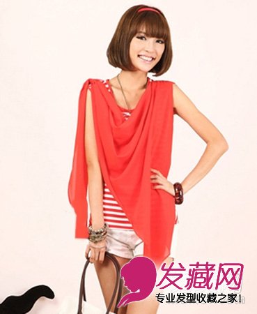 短款内扣梨花头,柔顺的秀发,打造温婉的淑女范儿,覆盖式的刘海,两旁发丝,圆脸的俏皮小女生,红色系的搭配,青春女生形象立即呈现。