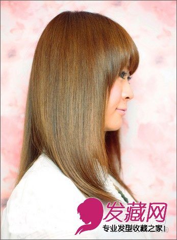 侧面长发发型圆润而自然。染发选用肤棕色,就算是褪色后也不影响美丽。