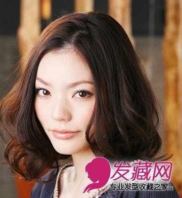 中分的刘海造型使脸型得到了更好的修饰,搭配上蓬松的烫发造型效果加倍