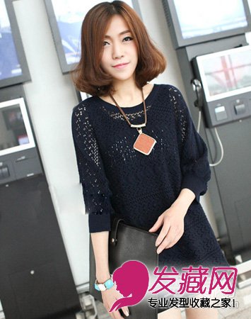 OL气质短发梨花头,侧分的长刘海巧妙的修饰脸型,而且更显优雅,浅棕色的发色更能突出发型的时尚感。