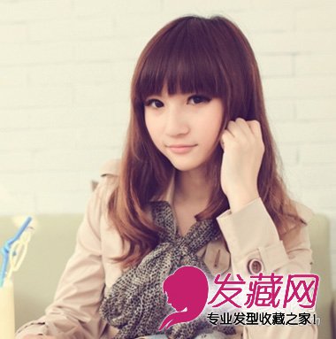 梨花头发尾做成蓬松状让造型看起来更丰盈,结合着齐刘海既衬托了眼睛又修饰了脸型。