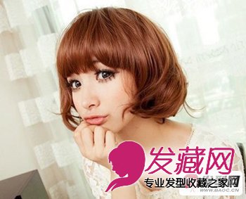 简单随意的韩式短卷发,自然的造型不用细心打理,梨花头是经久不衰的发型,随意的卷度呈现出完美的弧度,整齐稍卷的齐刘海,洋溢的一丝单纯,将双眼完美的放大,给人感觉十分甜美清新。