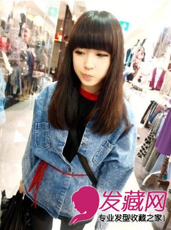 韩系风格的齐刘海的梨花头发型。这款中长发的梨花头,不仅非常的修颜。还非常的减龄显嫩,是一款适合学生的发型。