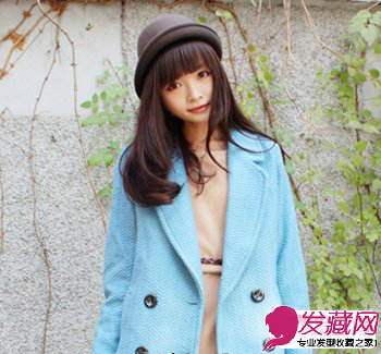 柔顺的齐刘海加上中长的卷发梨花头,使小脸看上去更加精致迷人,搭配黑色的小礼帽,更添发藏纯净,十足的乖乖女形象。