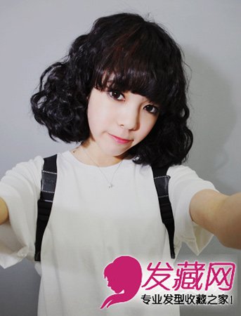 齐刘海的蛋卷头发型。这一款发型绝对走的是萌系可爱的路线。没有任何的染发效果,只需烫上蛋卷烫,就可以打造这种即时尚又可爱的感觉哦!