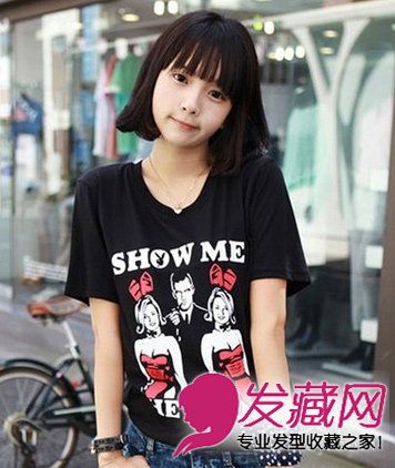 齐刘海的短发梨花头发型。也是一款比较可爱的发型,稀疏的齐刘海可是今年韩式刘海的流行趋势。给人一种减龄又不死板的感觉。内扣的发尾也可以很好的修脸圆脸。