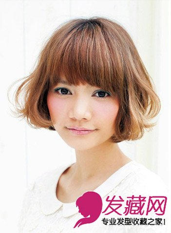 较短的梨花头造型有一种女性的精致完美。齐刘海逼近眉眼,更好的突出明亮的双眼,甜美复古。