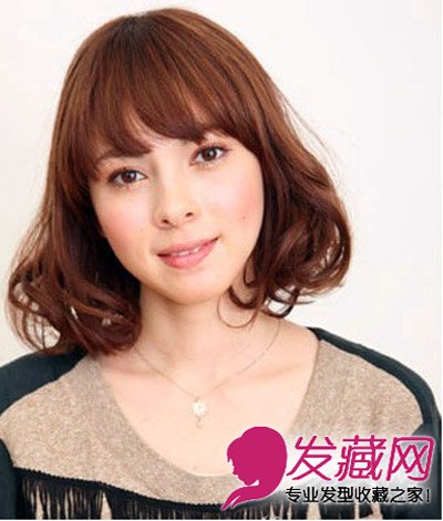 通过发尾内扣式弧度的卷发,将脸型问题一网打击,同时也增加了乖巧感。深色的染发加上修饰不多的齐刘海,更是增加的原因之一。