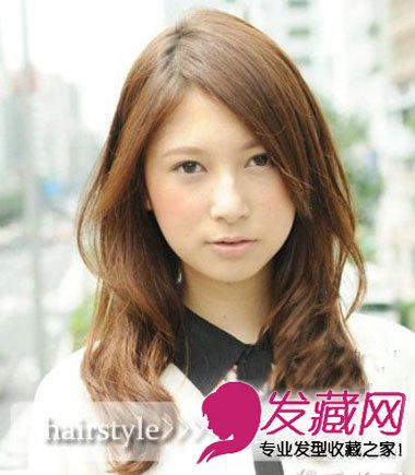 这款烫发发型对脸型的要求相对比较高,一侧的大片斜刘海遮住了半个额头,有缩短的视觉效果,两侧稍微向外翻卷的头发显年轻却不具修饰作用。