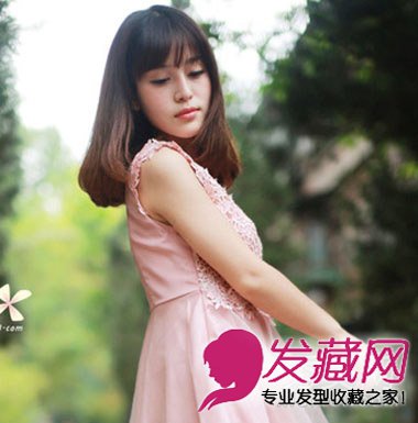 这一款中长发就比较简单大方,自然微烫发加上本身厚重的头发,时尚优雅,齐刘海设计,甜美感十足。
