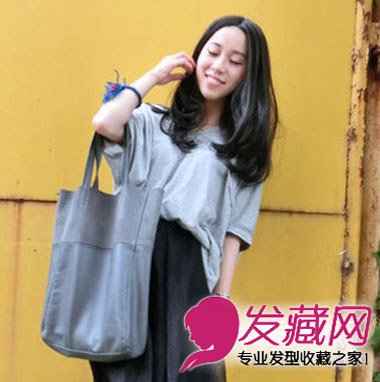 黑色系的中长卷发就比较能够体现出东方女孩特有的清纯自然感,简单的层次感卷烫发凸显鹅蛋脸型。