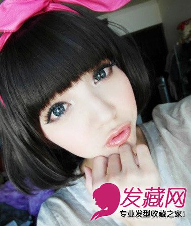 这款短发梨花头很有萌感,齐刘海设计有着修饰脸型的效果,发尾的卷度很有女人味,显得甜美俏皮。