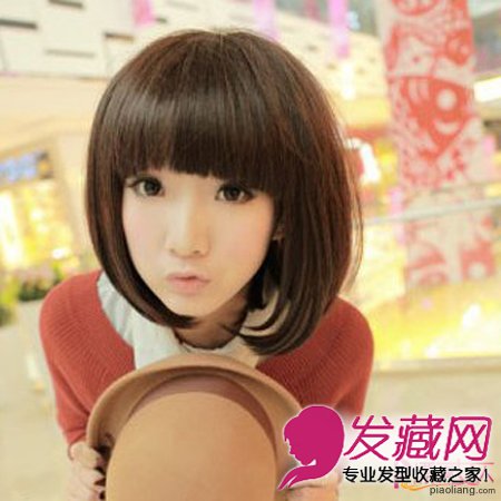 内扣的直短发,灵动可爱,搭配厚厚的齐刘海更精灵可人,配合自然系的发色清新迷人。这款比较适合90后的非主流女孩哦!