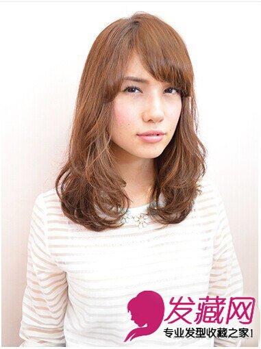 斜分的刘海打造出清新的感觉,不规则的卷度打造出浪漫的感觉,整体散发出清新感,脸型也得到修饰了呢!